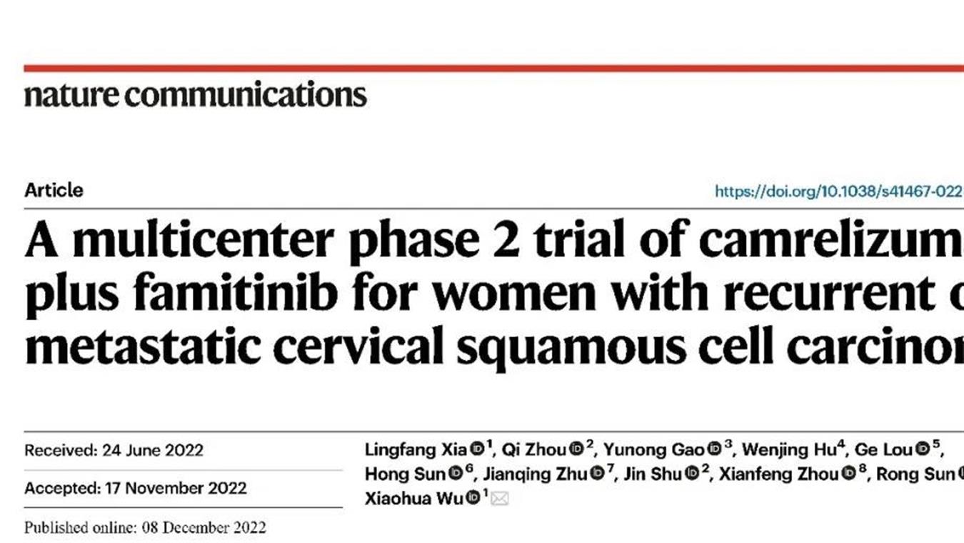 A8国际创新药卡瑞利珠单抗联合法米替尼用于复发或转移性宫颈癌研究结果荣登JCO